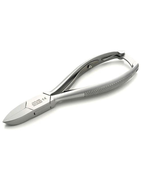 Stainless steel nipper with straight blade, box joint, grip handle. Forged and finished in Solingen Germany.